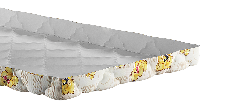 Верхнее покрытие матраса поликоттон с детским рисунком - материал, состоящий из натуральных волокон хлопка с добавлением синтетического волокна: полиэстра. Соотношение синтетической составляющей в материале варьируется от 35% до 80%. Чем больше синтетических нитей, тем выше показатели износостойкости. Поликоттон широко используют при производстве постельного белья, подушек, одеял, наматрасников, а также чехлов на матрасы.